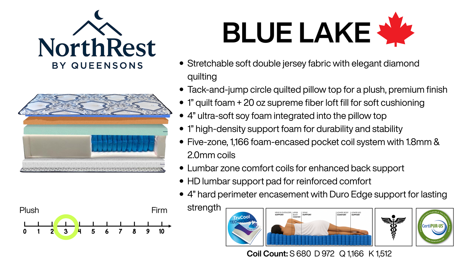 Experience the perfect balance of comfort and support with the Blue Lake Mattress by North Rest. Crafted in Canada with premium materials, this mattress is designed to deliver restful nights and refreshing mornings.