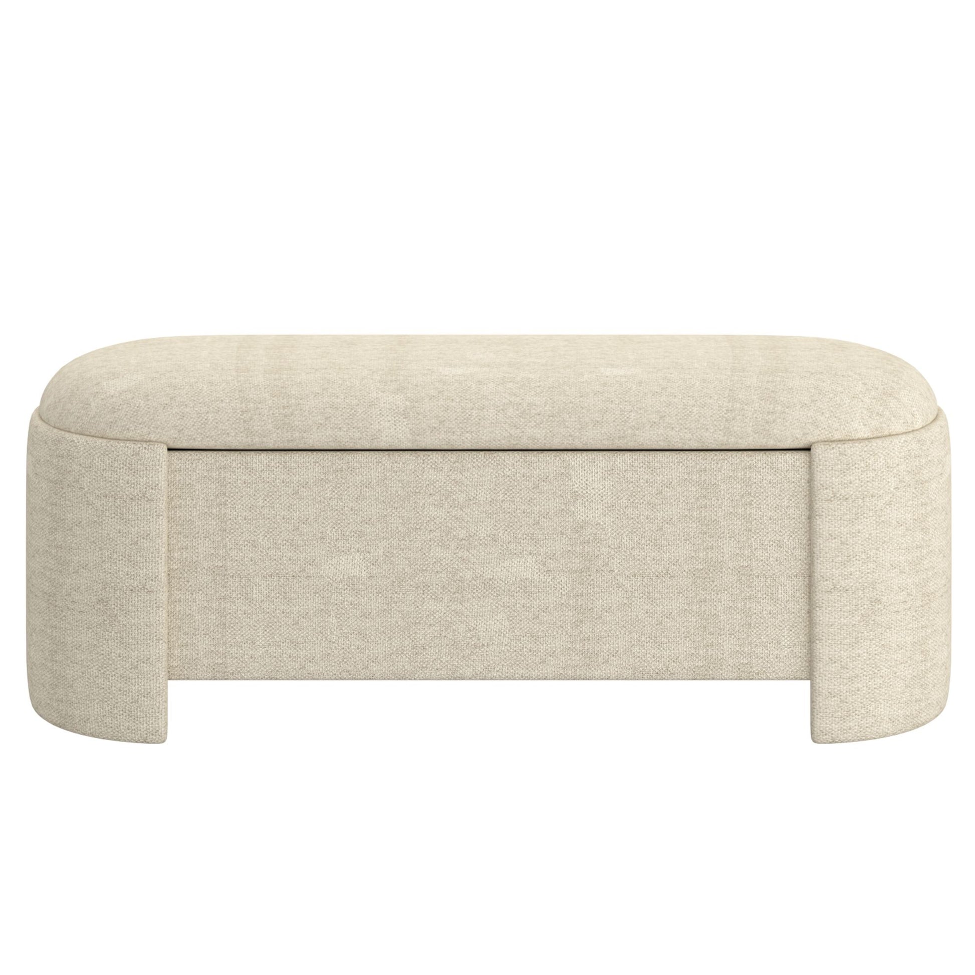 Multifunctional and just so gorgeous to look at! This fully upholstered storage ottoman is the perfect modern contemporary piece to fill your space. Whether you're looking for a storage bench for the end of the bed, or sit-for-shoes bench in the hallway, or a comfy place to kick your feet up in the living room, this curvy beauty will satisfy all those needs. The upholstery is a soft, textured chenille-like fabric - looks and feels luxurious!