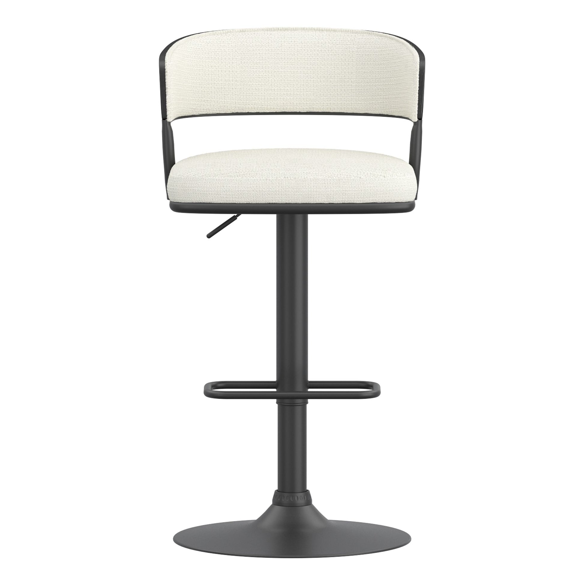 This contemporary, adjustable-height stool offers durability along with a modern, stylish silhouette. The curved bentwood seat back provides ergonomic support with a touch of natural warmth, while the seat cushion, upholstered in a soft, textured performance fabric, ensures lasting comfort. This premium fabric is both stain and water-repellent, making it ideal for busy households and entertaining spaces.