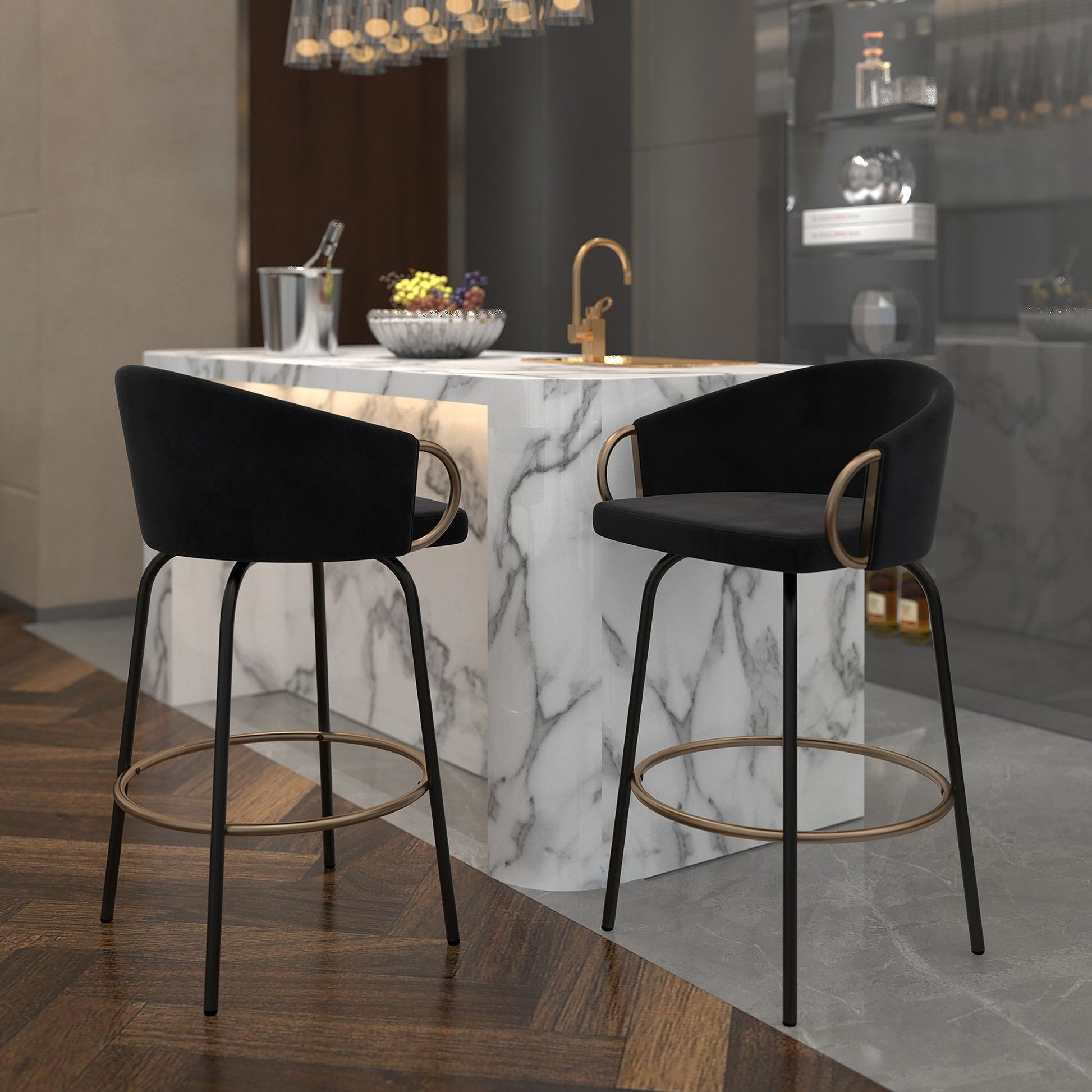 Tabouret de bar Lavo 26 po, lot de 2 en gris, noir et or