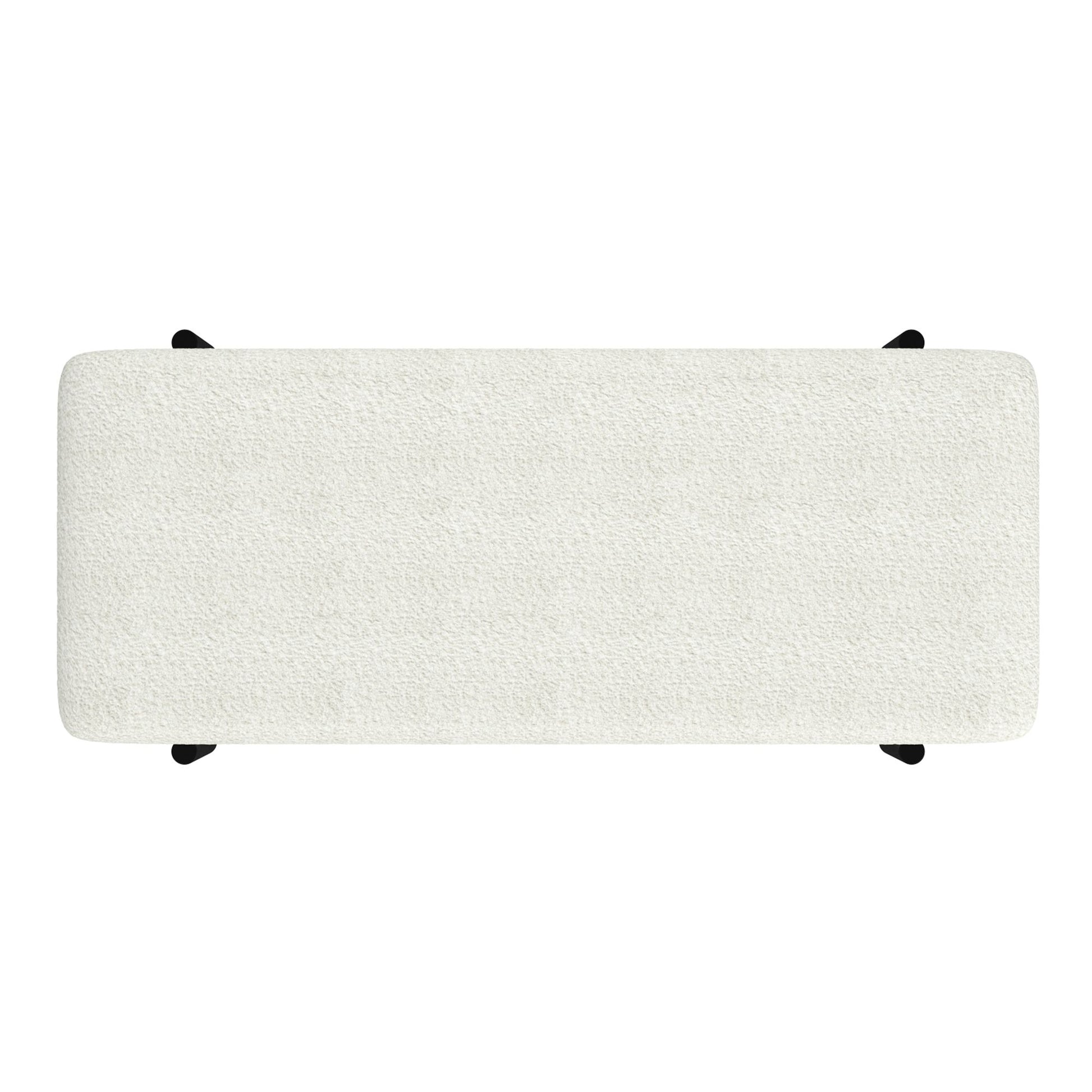- Soft, ivory boucle fabric upholstery and black metal frame and legs