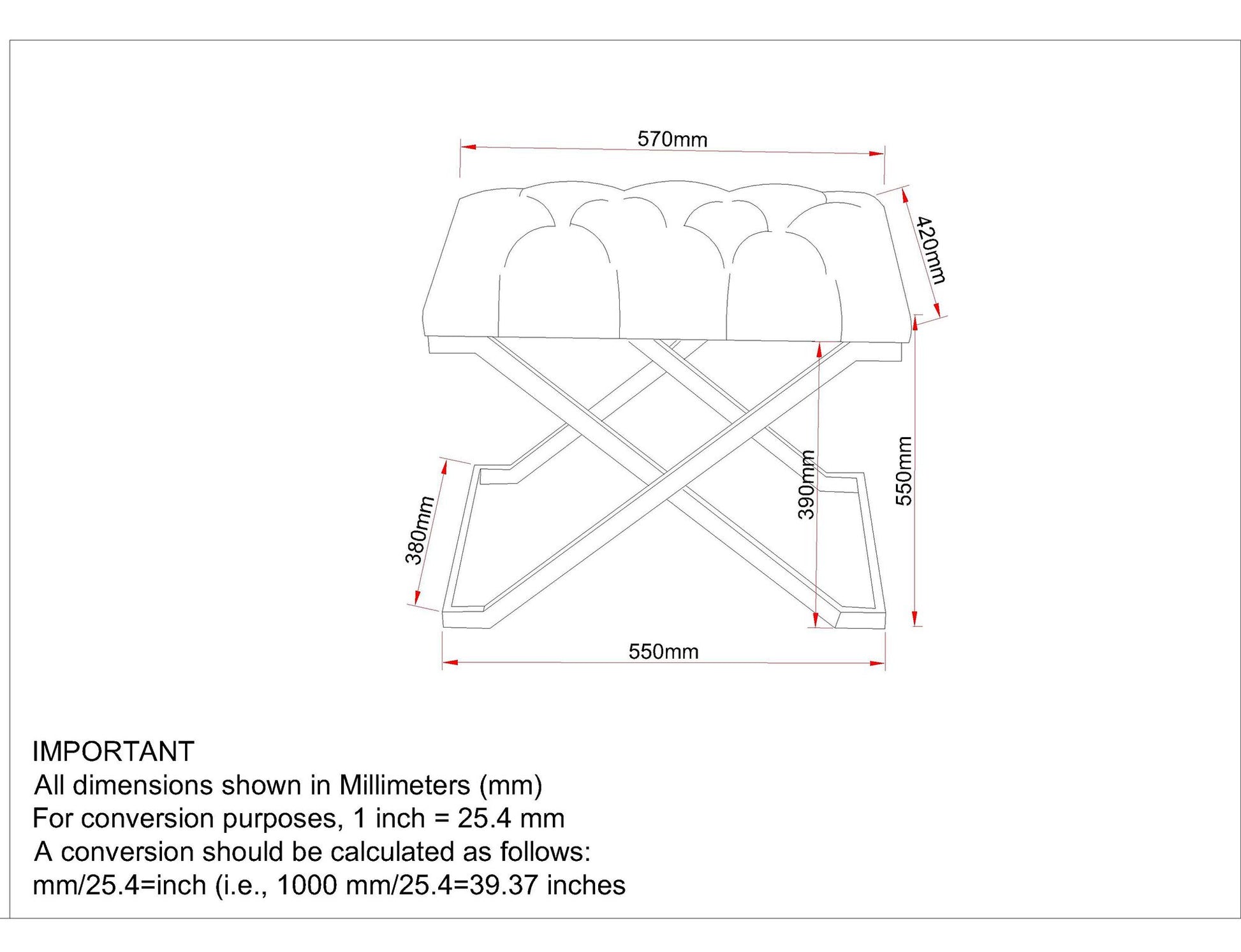 Dimensions 47,25 x 15,75 x 17,75"H