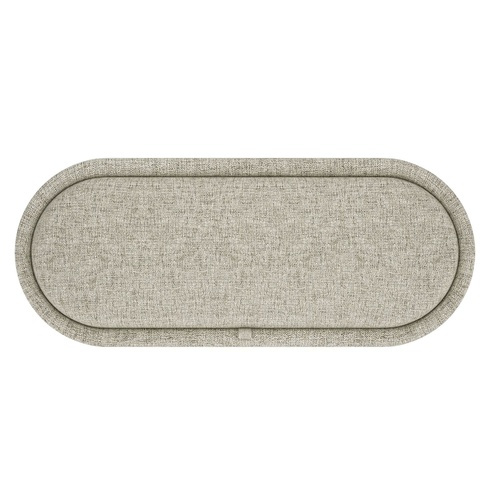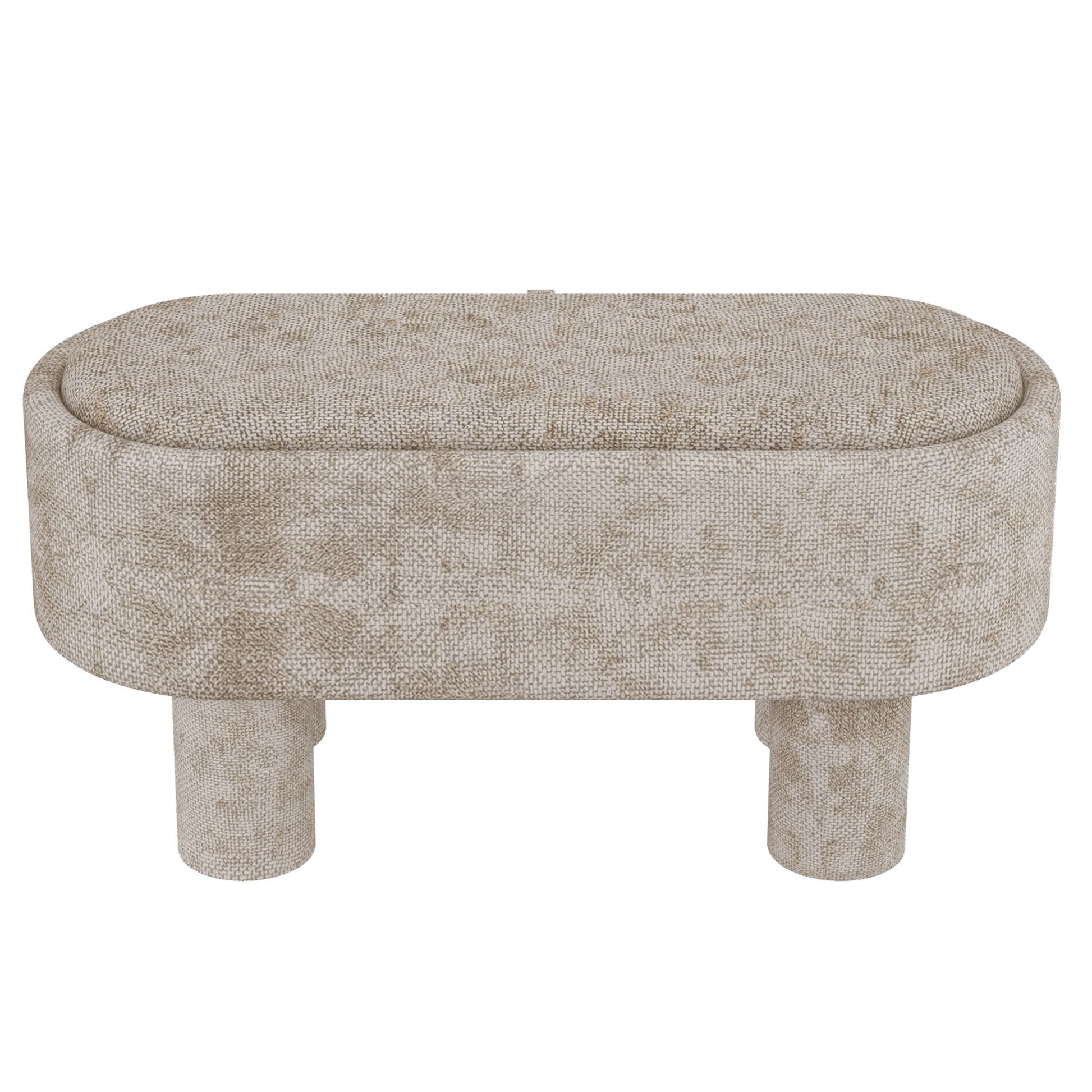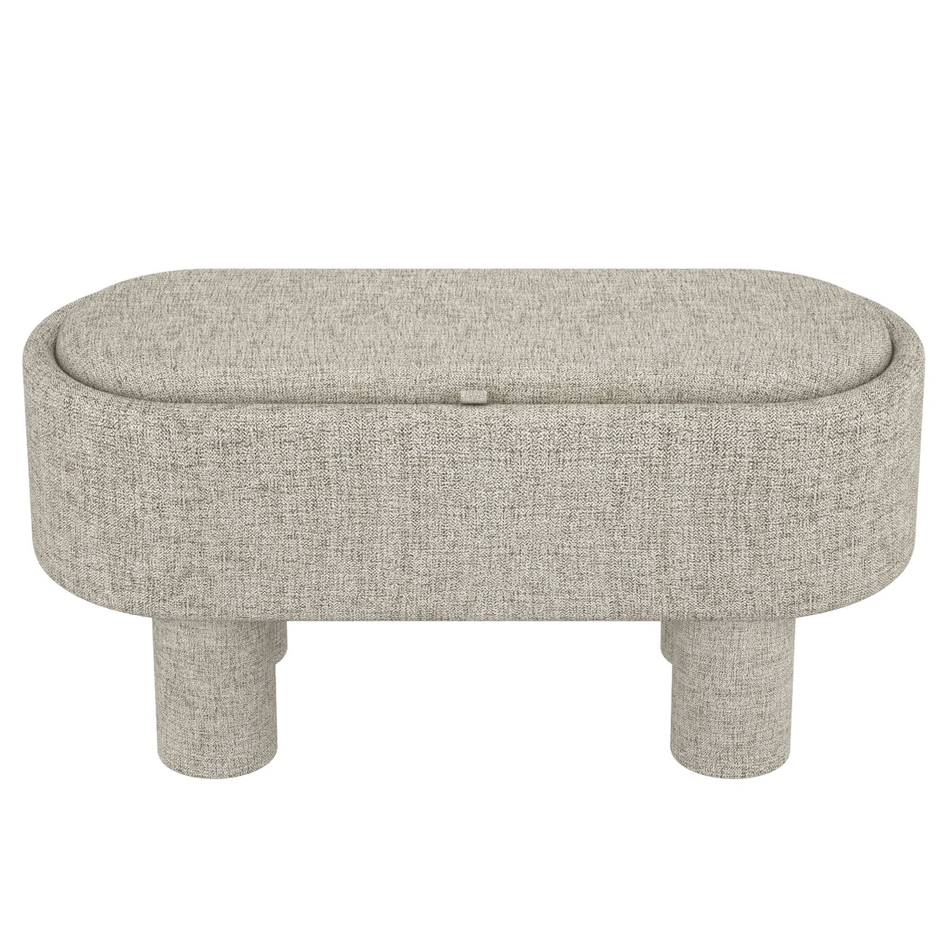 Hide away clutter and keep your space looking pristine and stylish with this storage bench. The lift-off top makes it super quick and easy to stash away blankets, toys, books and gaming equipment. Fully upholstered seat and legs, the elevated linen fabric in a heathered greige will fit well with any decor. Toss your feet up as an ottoman when lounging on the couch, place it at the end of a bed, or use for extra seating in almost any space.