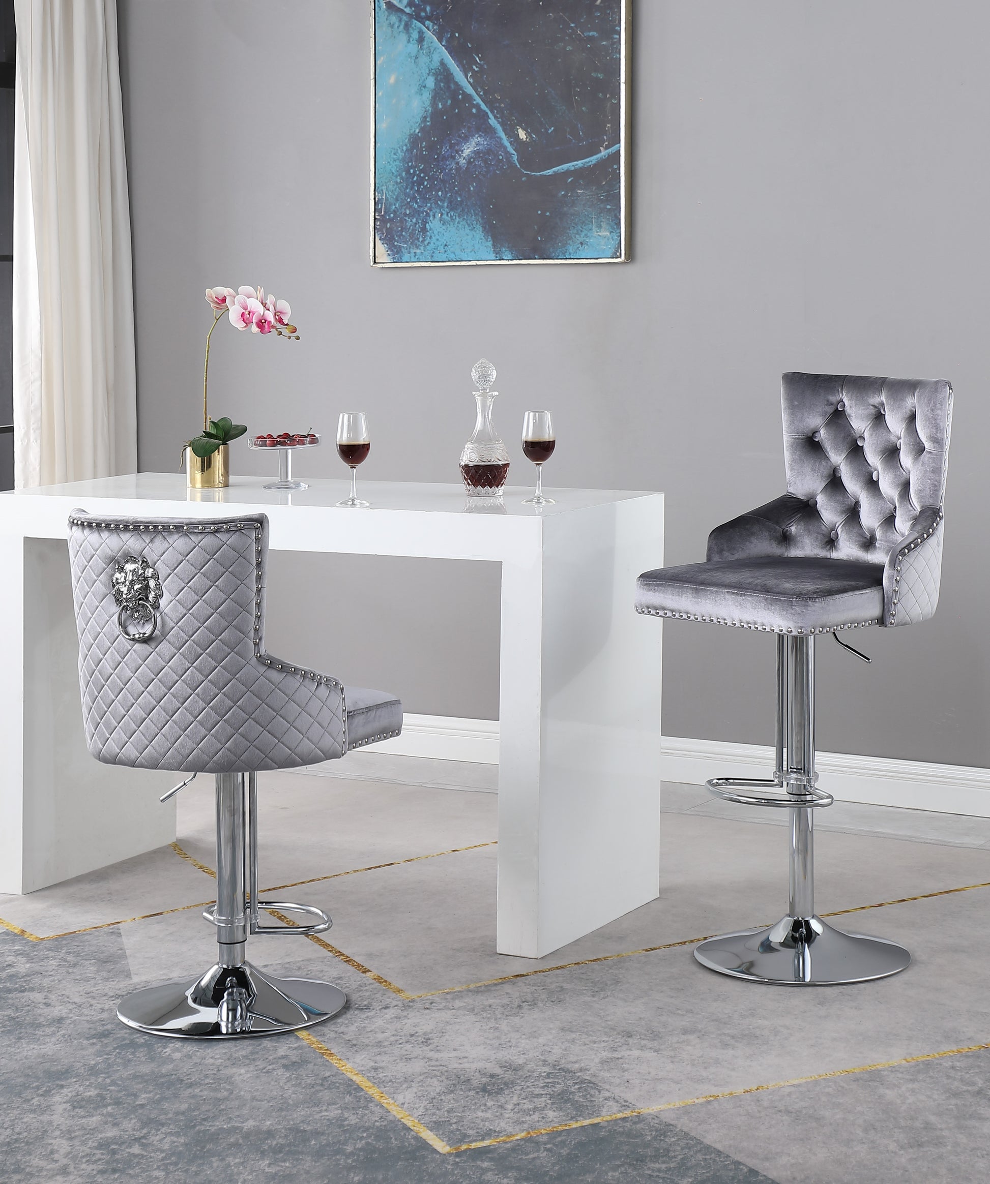 These bar stools are absolutely stunning! The tufted velvet design with the lion head detail on the back makes them look so elegant and high-end. They’re super comfortable to sit on, and the height adjustment works smoothly. The chrome base feels sturdy, and I’ve already received lots of compliments from guests. Perfect mix of style and comfort!