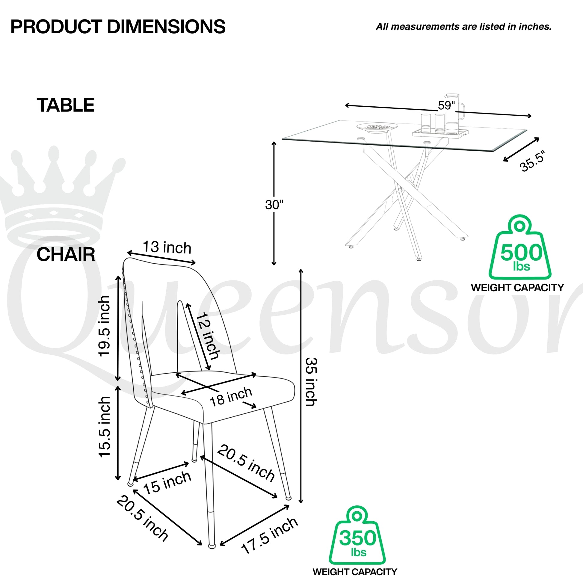 Weight Capacity: 350 lbs per chair