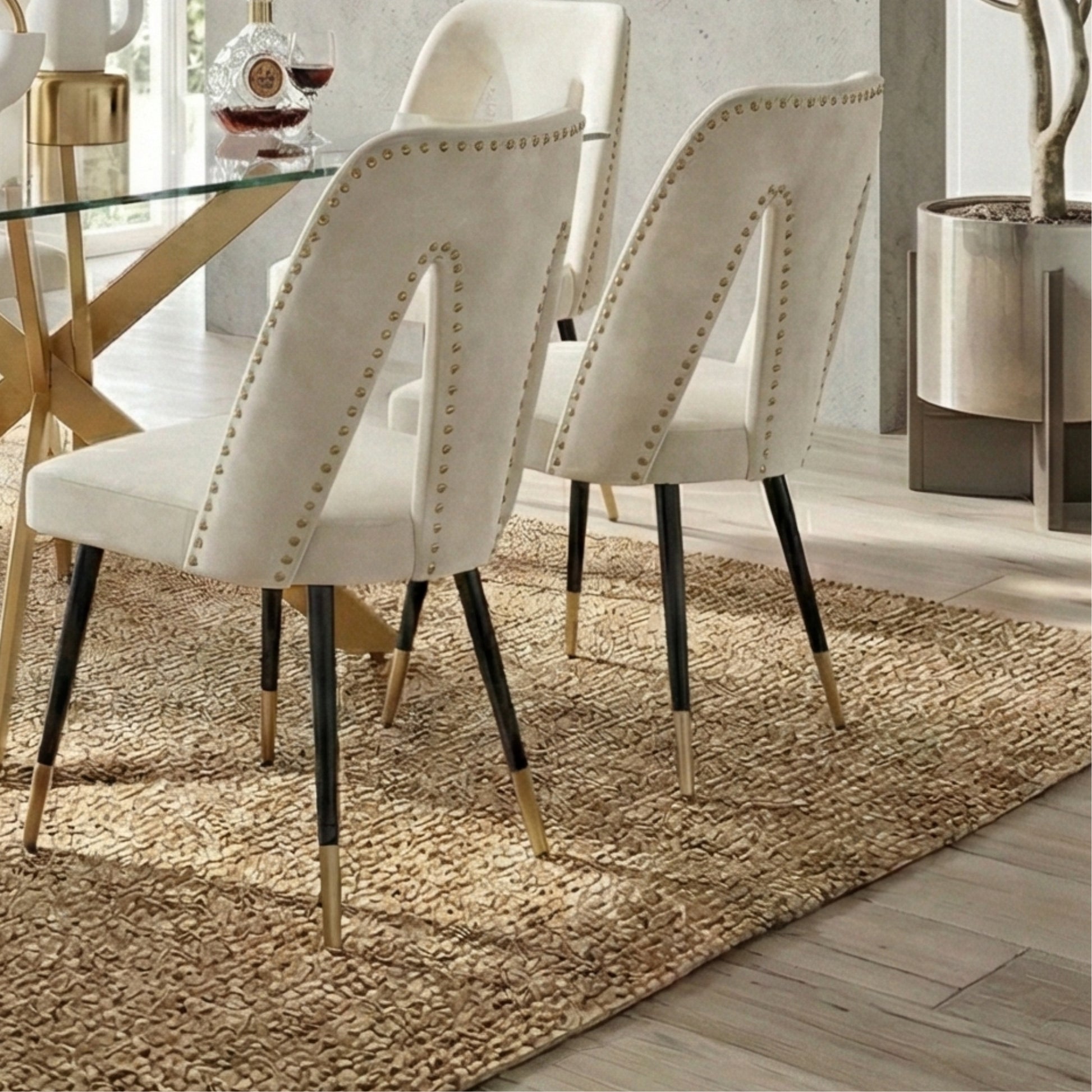 ✔ Premium velvet nailhead chairs