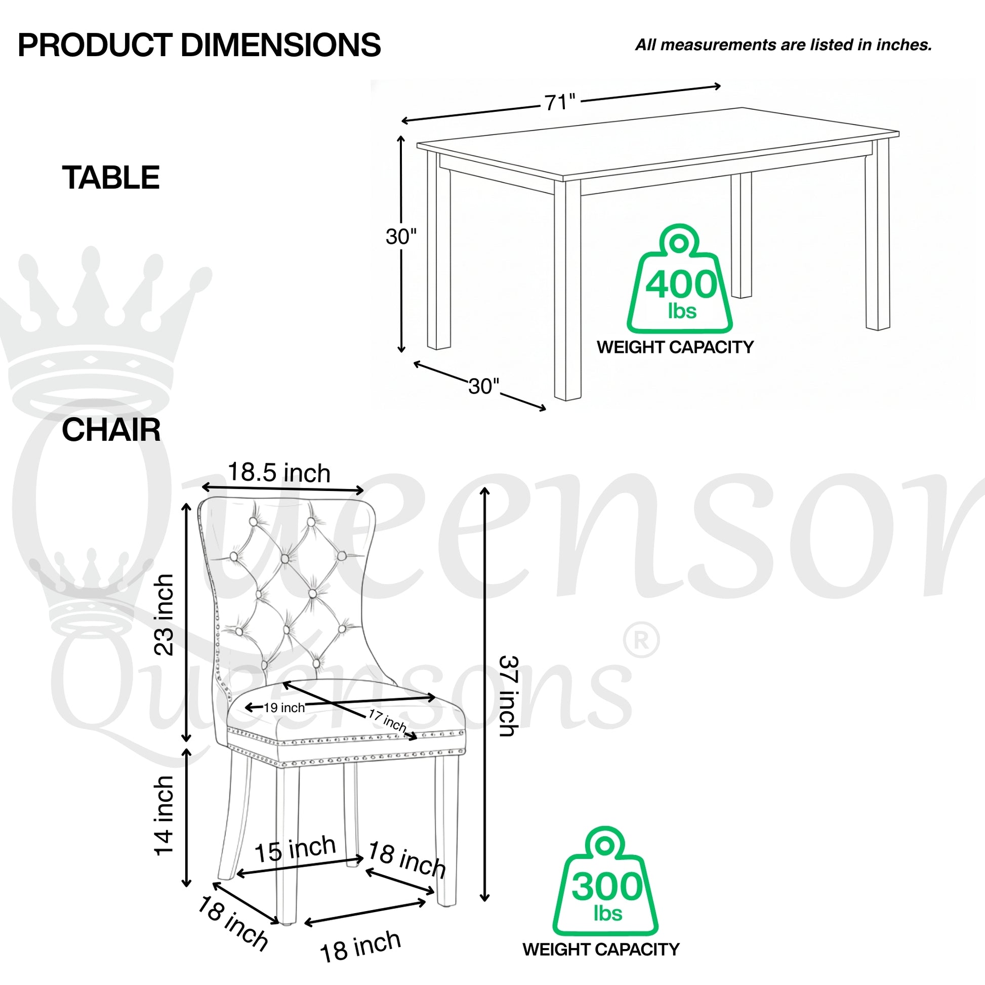 Weight Capacity: 400 lbs