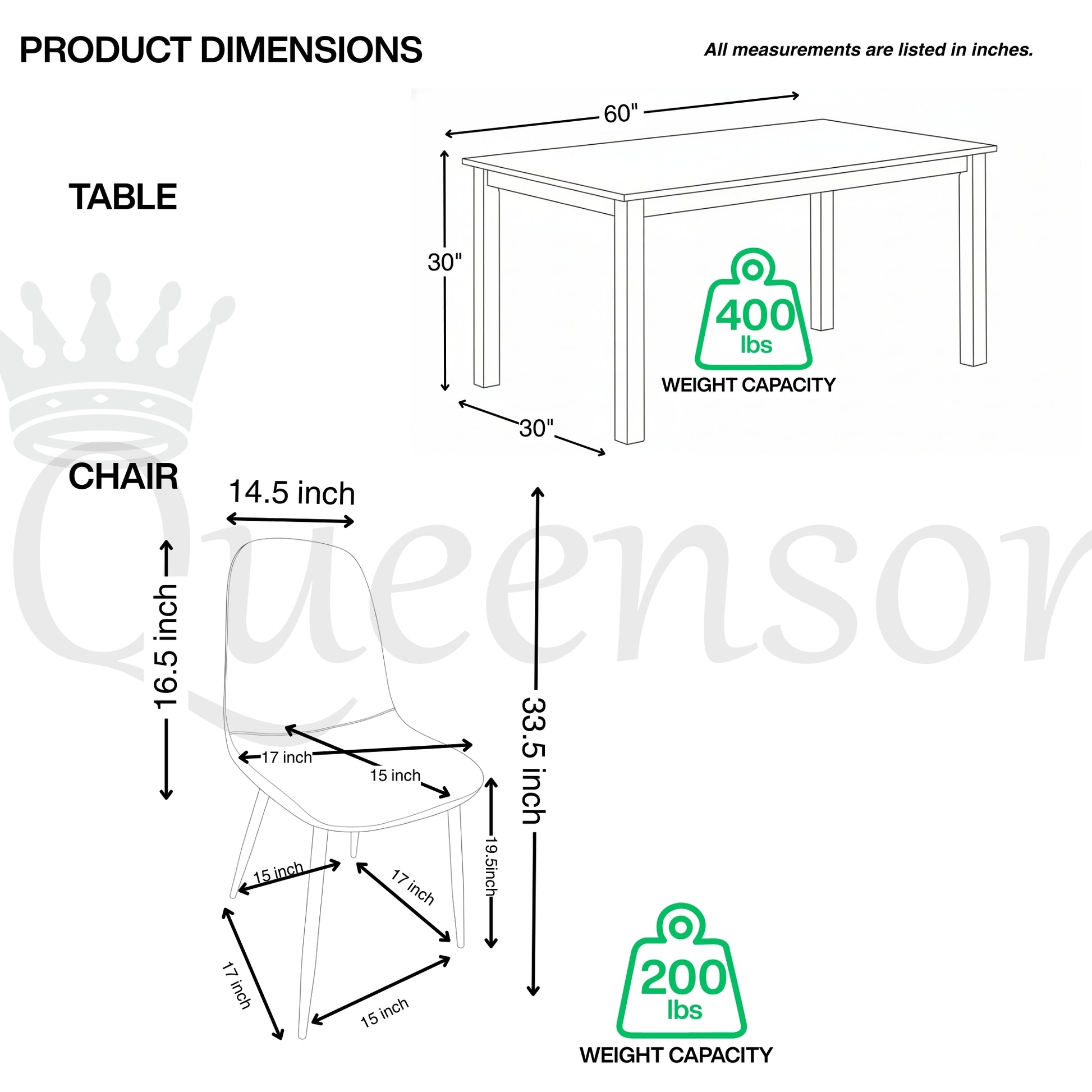 Weight Capacity: 200 lbs per chair